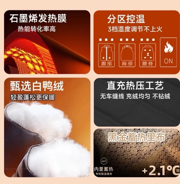电加热羽绒马甲新款石墨烯充电发热防寒背心智能恒温保暖衣New electric heated down vest with graphene charging heating, cold-proof back shirt, smart constant temperature warm clothing
